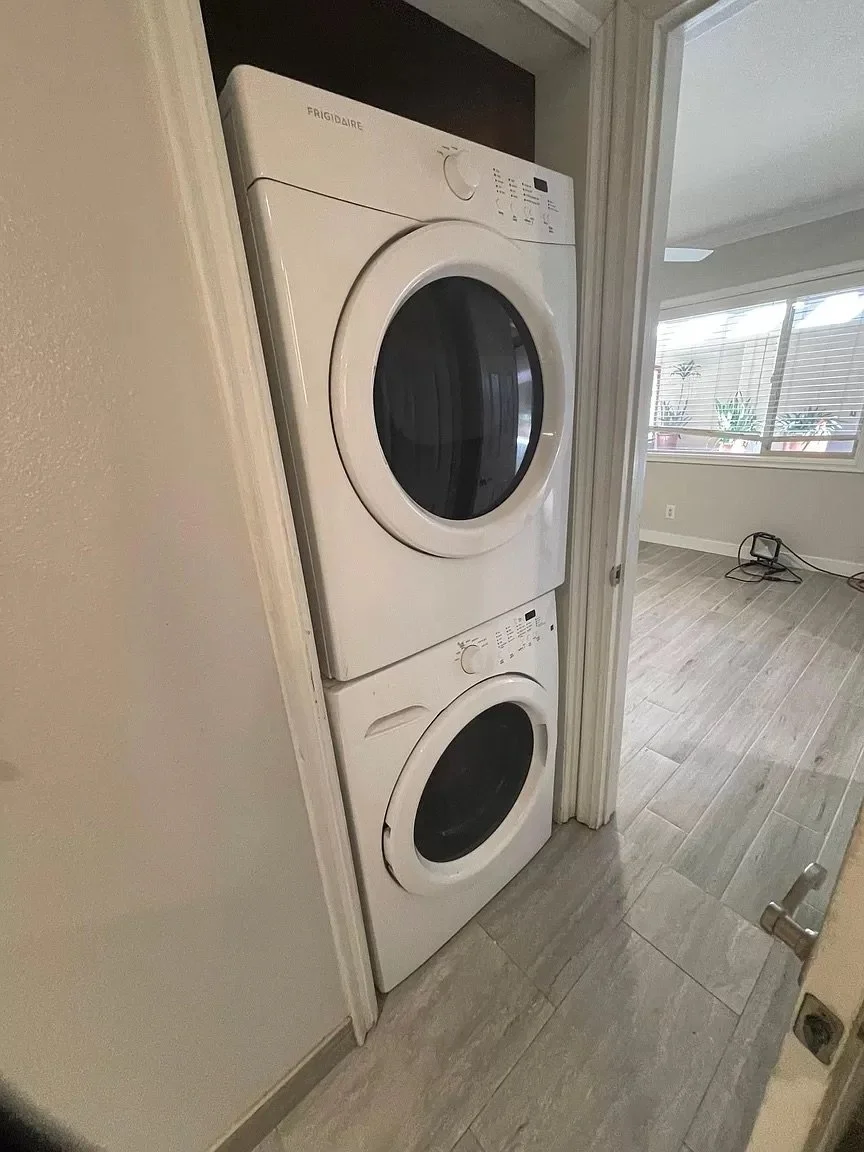 1 Year Lease Term, tenant pays for Utilities. No pets are allowed. Washer and dryer are included inside the apartment. Gated Parking with 1 designated parking space.