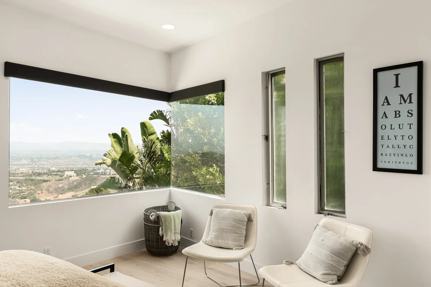 This modern masterpiece features 3 bedrooms, 2.5 bathrooms, a dedicated home office, an upstairs bonus room, and a home gym including a treadmill, stationary bike, full set of dumbbells, squat rack, high/low cable and more. The open floor plan is filled with natural light, soaring ceilings, and expansive windows that frame sweeping views of Saddleback Mountain, city lights, and rolling hills.