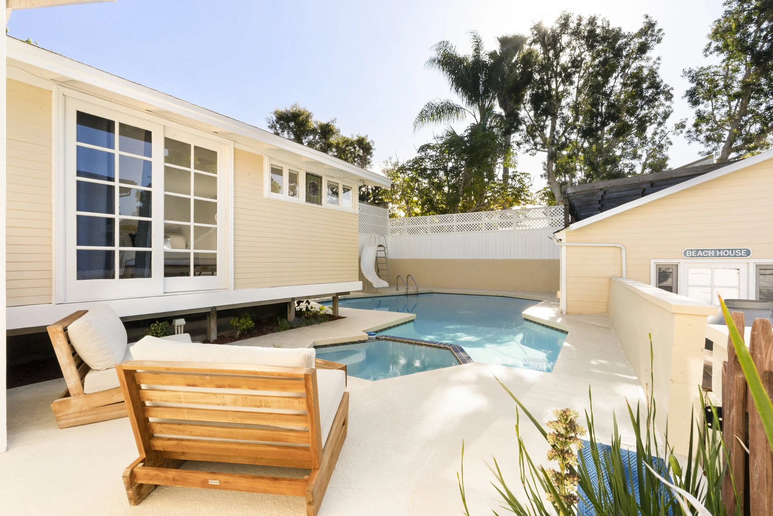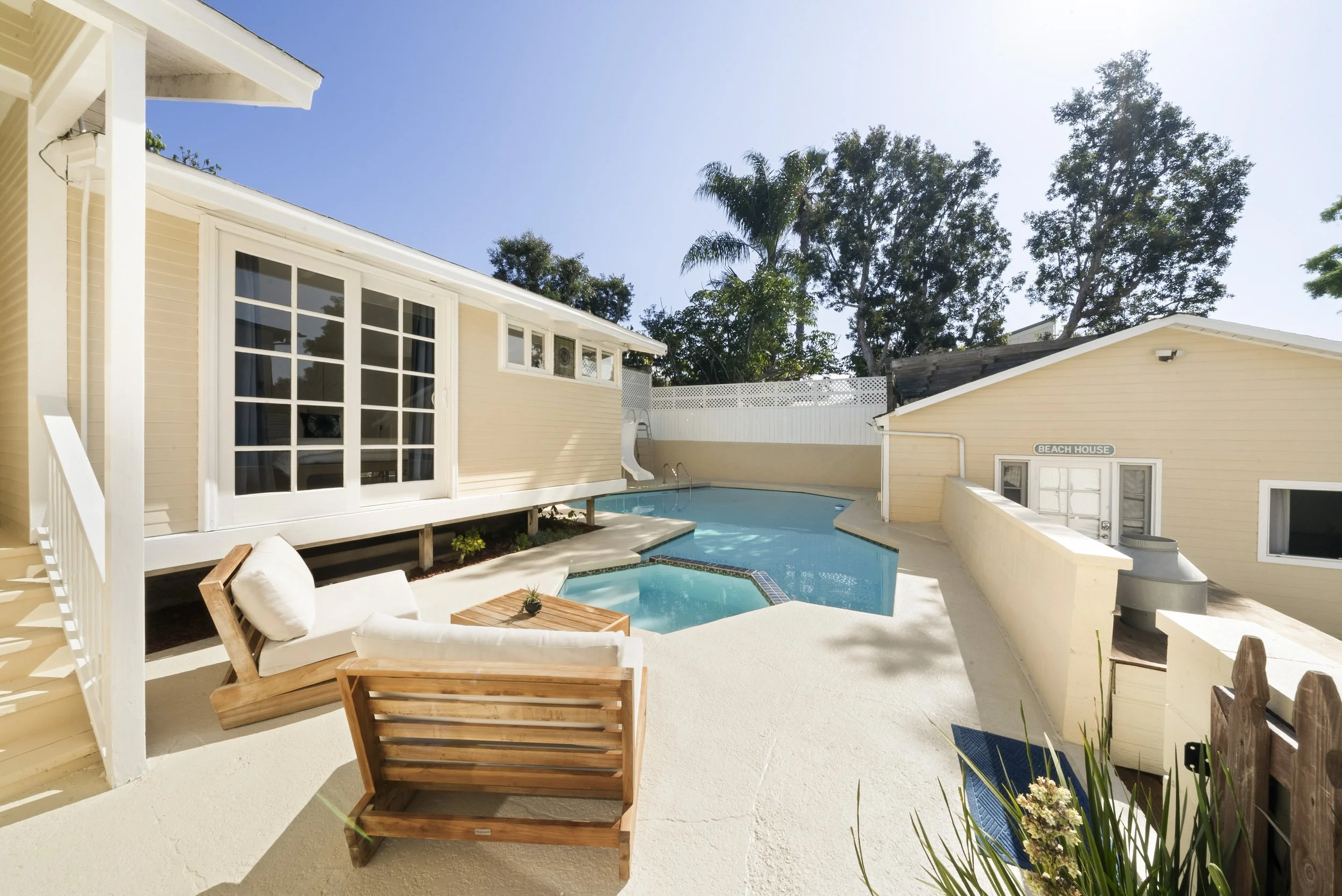 Set on one of the larger parcels on the street, the home blends coastal charm with flexible living spaces, including a detached casita perfect for guests, extended family, or a creative retreat. Step outside to your own backyard oasis featuring a sparkling pool, relaxing spa, and multiple areas for entertaining, dining, and unwinding under the coastal sky.