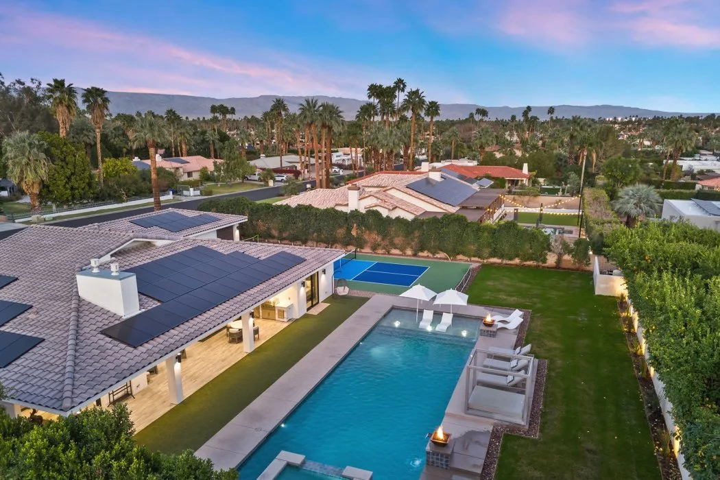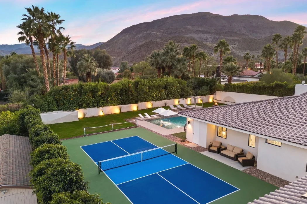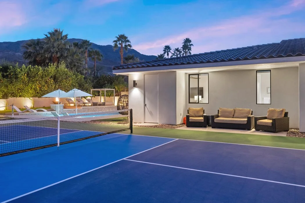 Step outside into your own desert retreat, thoughtfully designed for leisure, connection, and fun. The beautifully landscaped grounds feature a sparkling private pool with tanning shelf, a spa, and multiple lounge areas perfect for soaking up the sun. Host unforgettable gatherings with the outdoor dining space and built-in BBQ, or unwind in the outdoor living room and fireplace lounge as the desert sky changes colors at sunset. For recreation, enjoy the convenience of your private pickleball court, along with generous open spaces that invite both activity and relaxation in true California style.